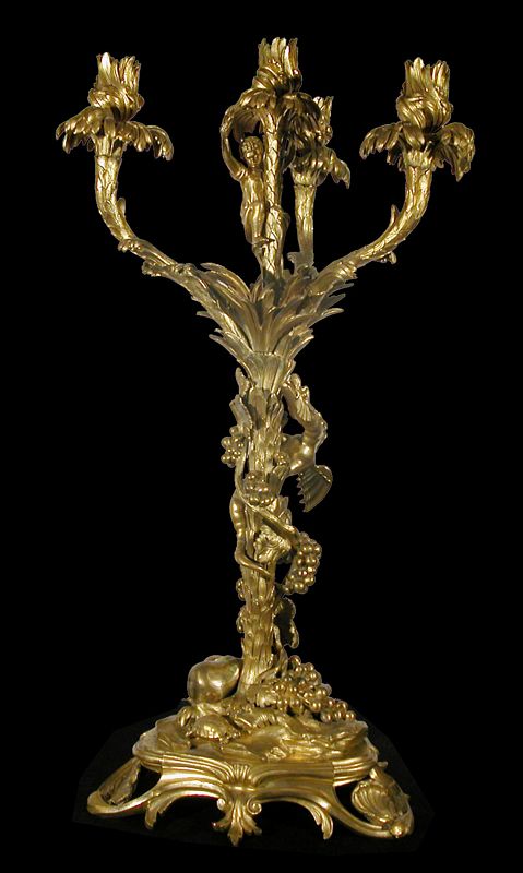 | candeliere in bronzo dorato e finemente cesellato,periodo "Au Bon Sauvage",inizi del XIX secolo, Francia | |