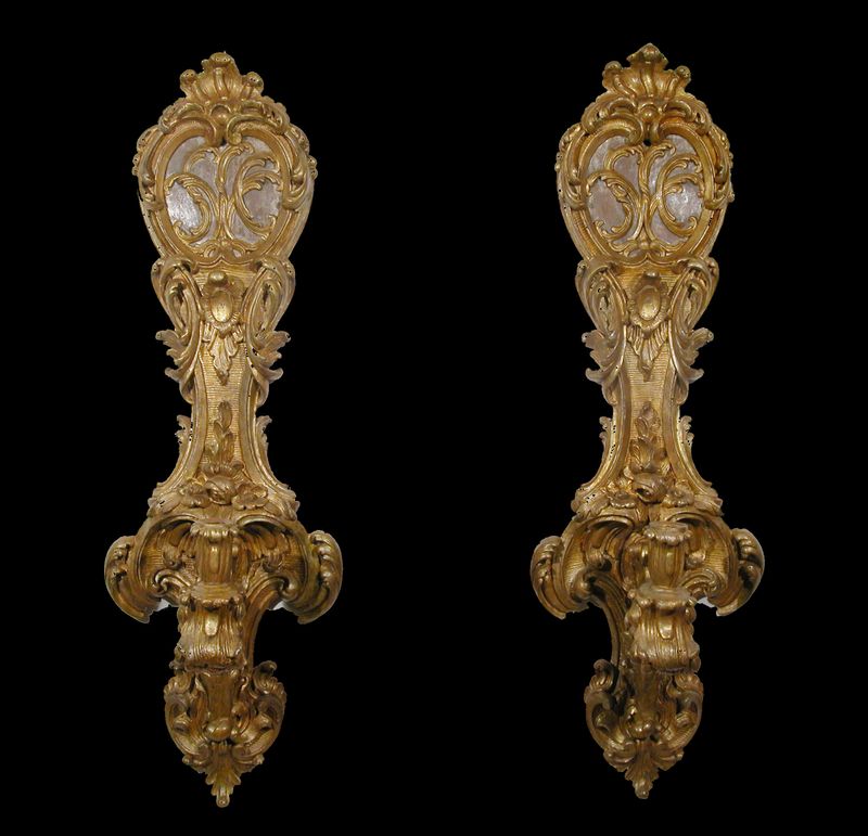 | coppia di appliques in legno intagliato, dorato e scolpito, Roma,fine '600 | |
